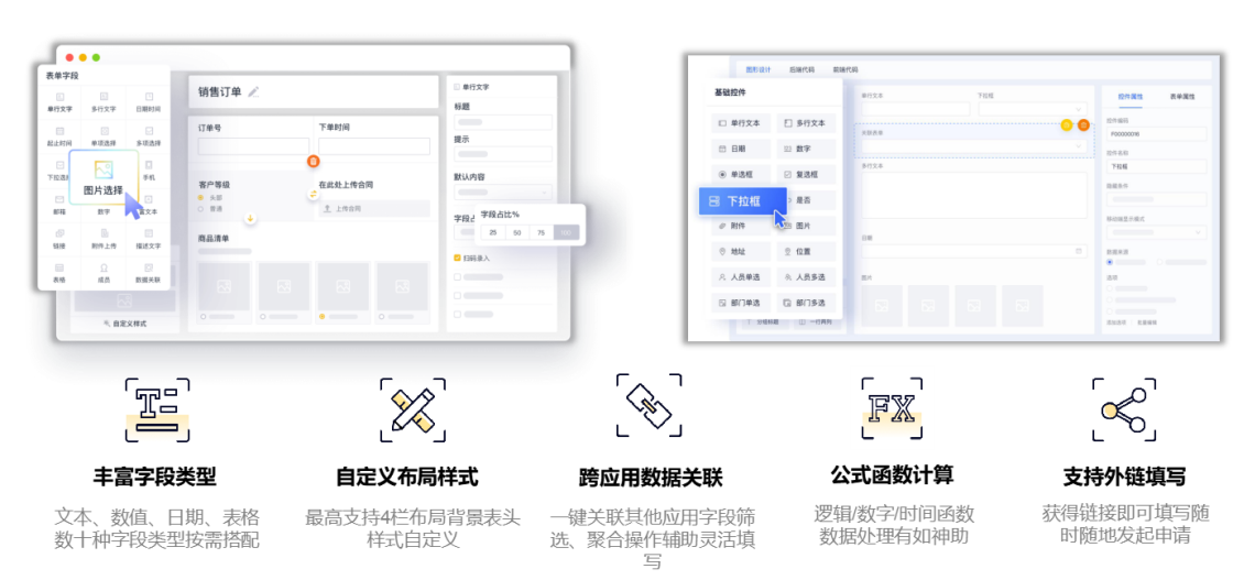 零代码表单引擎,像玩“乐高”一样自由搭建企业数据入口。丰富的字段类型、拖拽式的表单设计,自定义的表单样式,让系统管理如虎添翼~