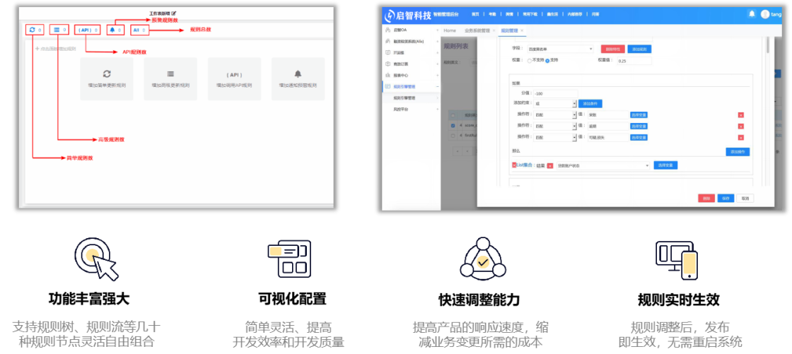 零代码规则引擎在面对多变的业务规则时,可以灵活的制定系统规则,实现零代码编辑业务算法,即无需通过改代码逻辑,直接更新、上线系统