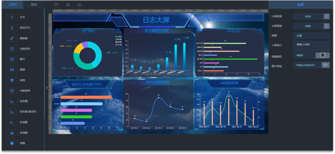 零代码拖拽配置大屏,将你想要展示的图标直接拖拽到设计区,选择对应数据源显示